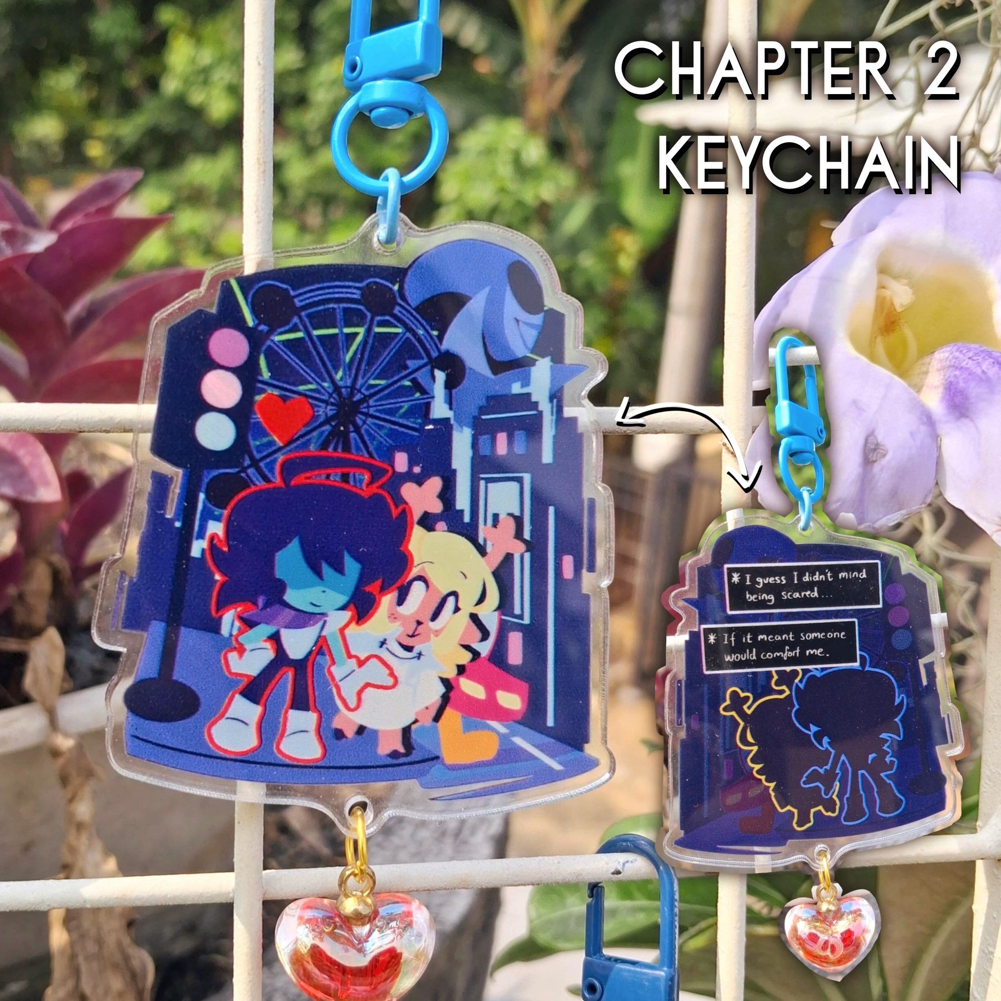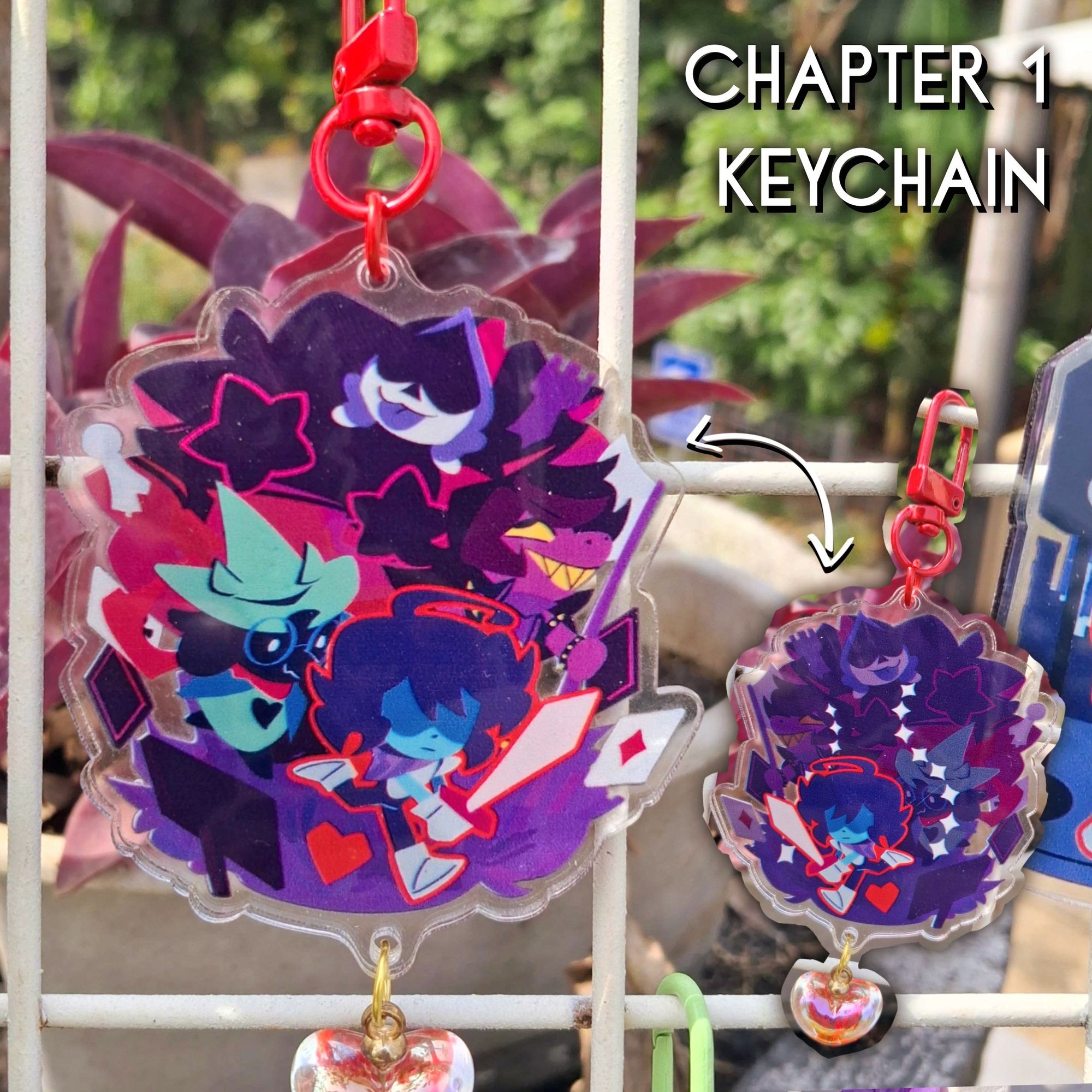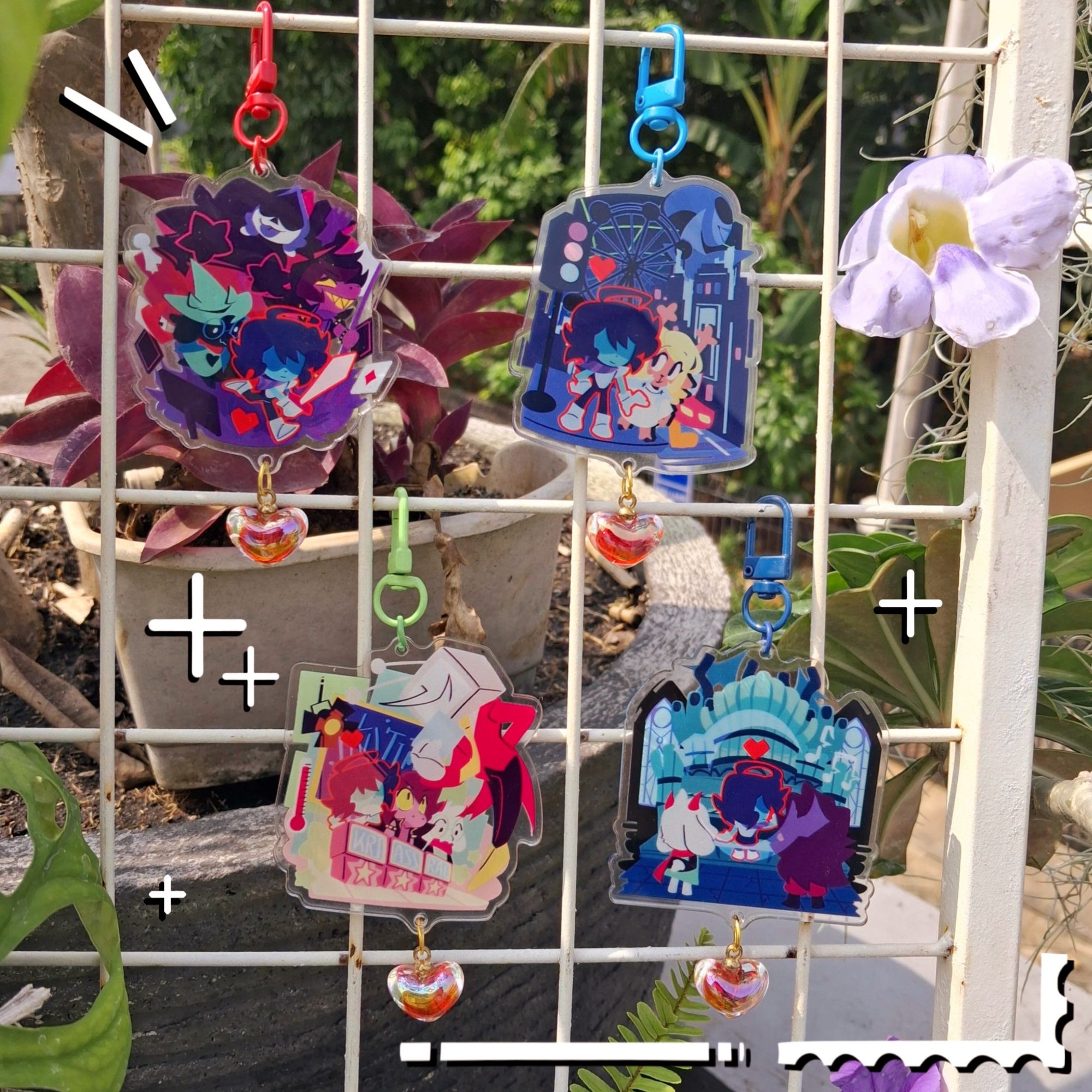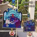 A collection of four acrylic charms, designs inspired by chapters 1 up to 4!